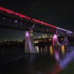 The commemoration of the 69th anniversary of the 1956 Revolution took place this year on October 26, hosted by the St. Emeric Roman Catholic Church. Among the participants were Sándor Vörös, President of the Hungarian Cultural Society of Edmonton, Zoltán Berkes, President of the Corvin Historical Society, and many Hungarians who arrived in Edmonton after the Revolution. Sándor Vörös, Zoltán Berkes, and Mária Hock – with whom we conducted an interview on the anniversary of the Revolution – laid a wreath at the memorial monument in the church garden. On October 23, the High Level Bridge – for the 10th consecutive year – was illuminated in red, white, and green, paying tribute to the memory of the Revolution.