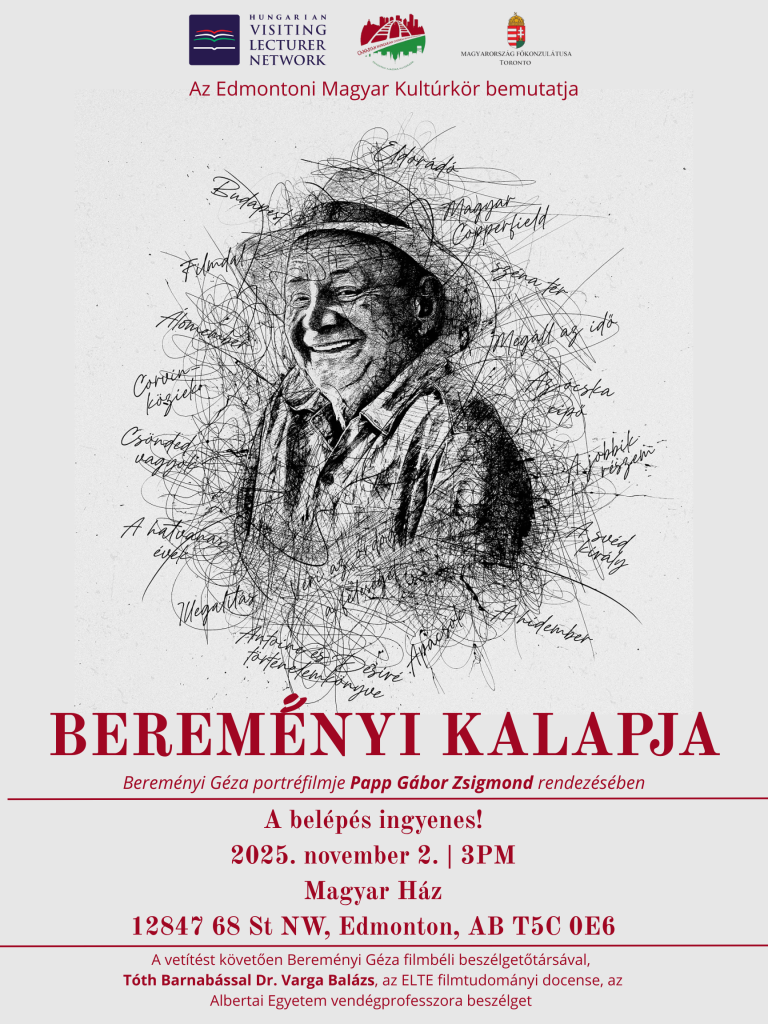 Szeretettel várunk mindenkit november 2-án, délután 3 órai kezdettel Papp Gábor Zsigmond Bereményi kalapja (2022) című dokumentumfilmének kanadai premierjére, amely a Magyar Házban kerül megtartásra!